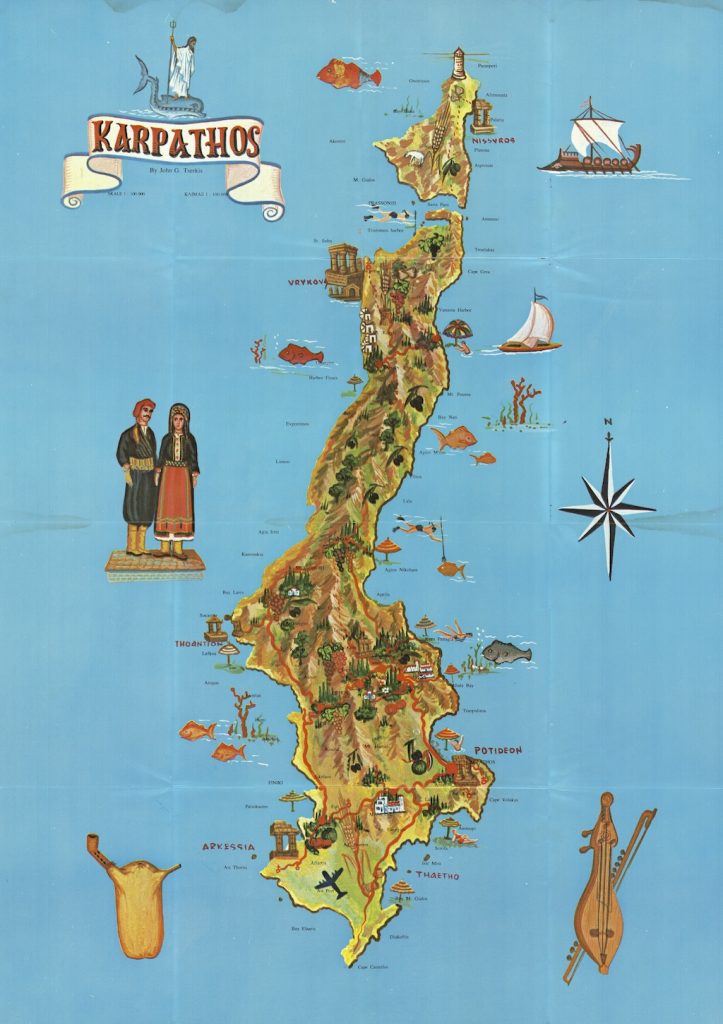 Ένας από τους πρώτους τουριστικούς χάρτες της Καρπάθου, από τον Γιάννη Τσέρκη (1971)