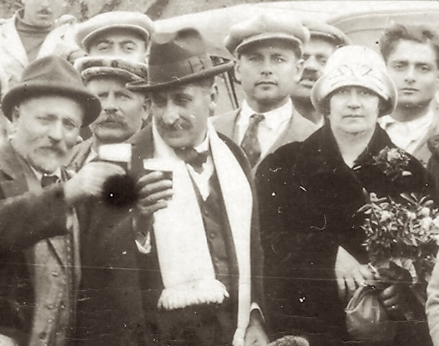 Ο Ιατρός Βασίλειος Βέργης επισκέπτεται τη γενέτειρα του το 1928 (περίπου). Σταματά στο Απέρι όπου κατέληγε ο τότε αμαξιτός δρόμος που τον υποδέχονται Απερίτες και Βωλαδιώτες. (Λαογραφικό Αρχείο Απερίου).