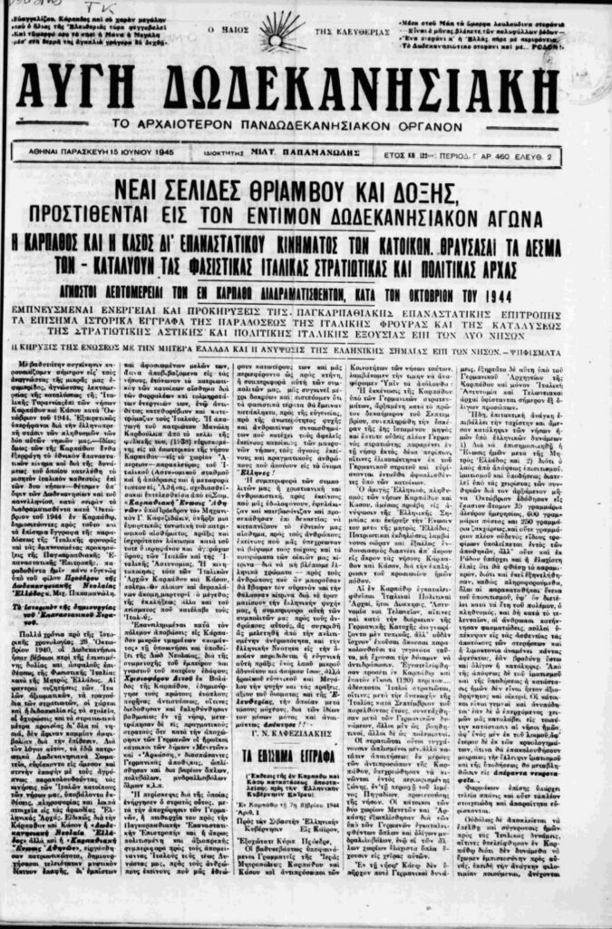 Δωδεκανησιακή Αυγή περί της Επανάστασης της Καρπάθου